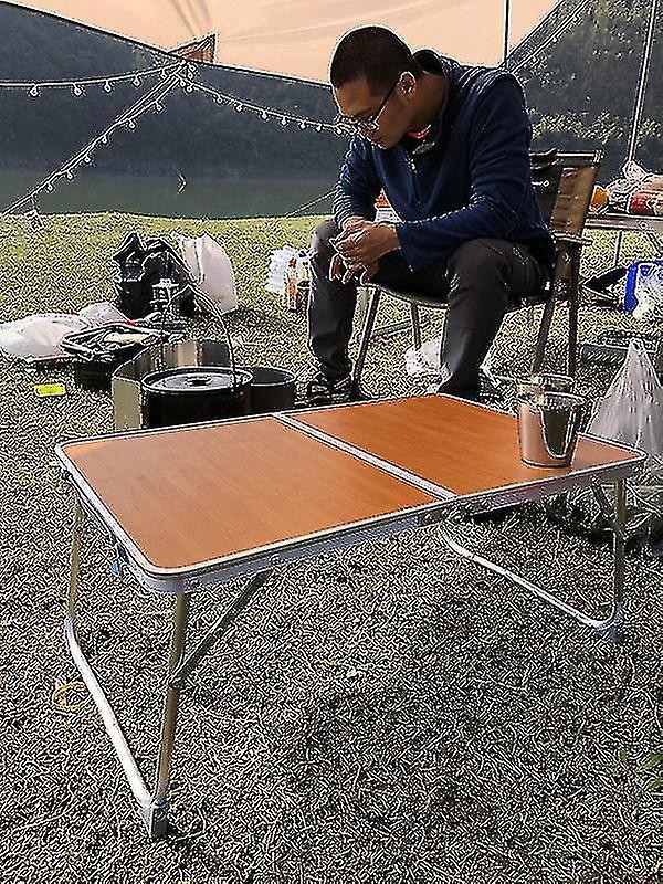 طاولة قابلة للطي خارجية من سبائك الألومنيوم، طاولة تخييم (لون الخشب)