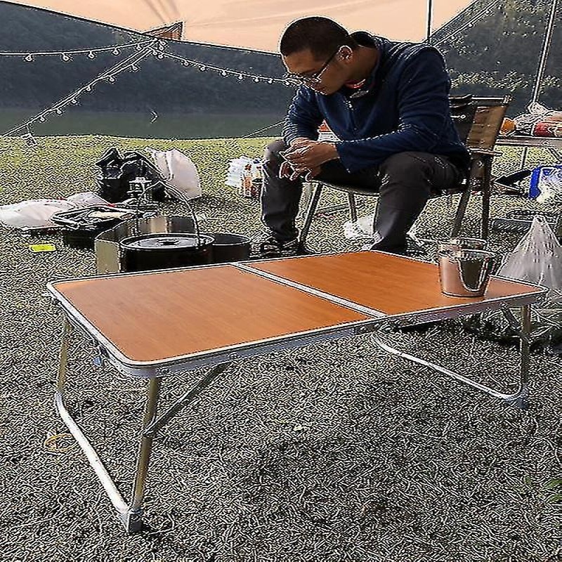 Mesa plegable de aleación de aluminio para exteriores, ideal para acampar (color madera)