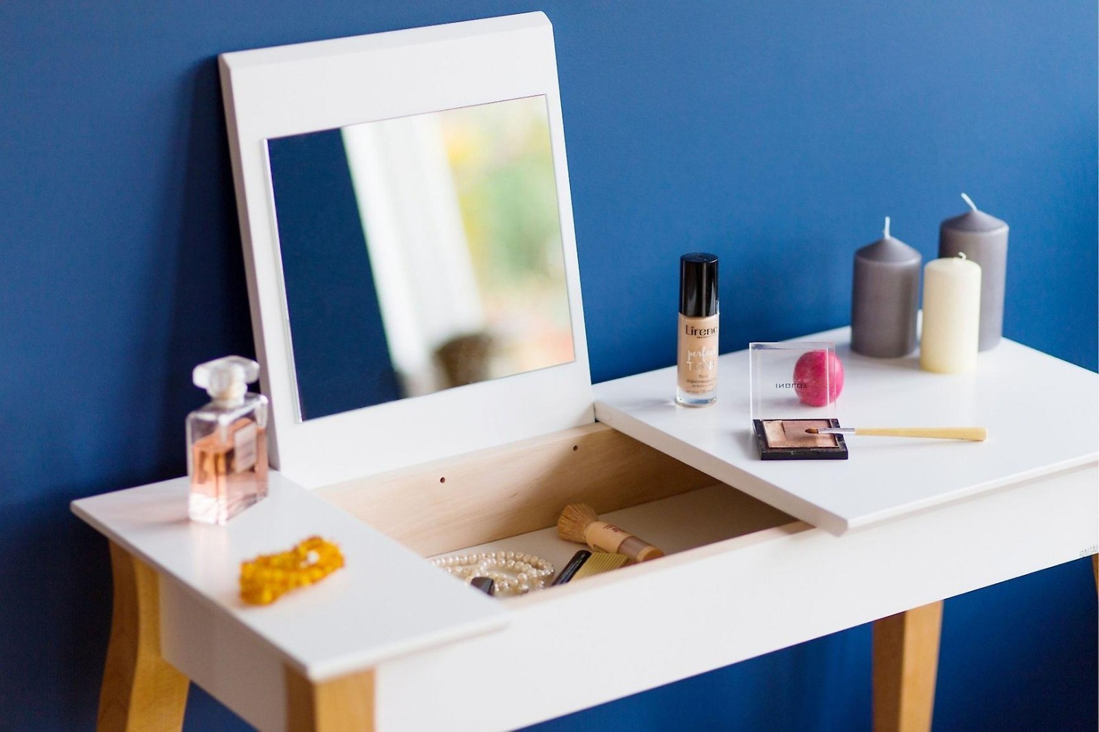 طاولة الزينة "ليلو" إضافة رائعة لأي غرفة نوم أو غرفة ملابس. بعرض 105 سم، توفر الطاولة مساحة عمل واسعة، وأبعاد وحدة التخزين (الطول 54 سم × العمق 24 سم × الارتفاع 7 سم) توفر مساحة تخزين واسعة لجميع مستحضرات التجميل.