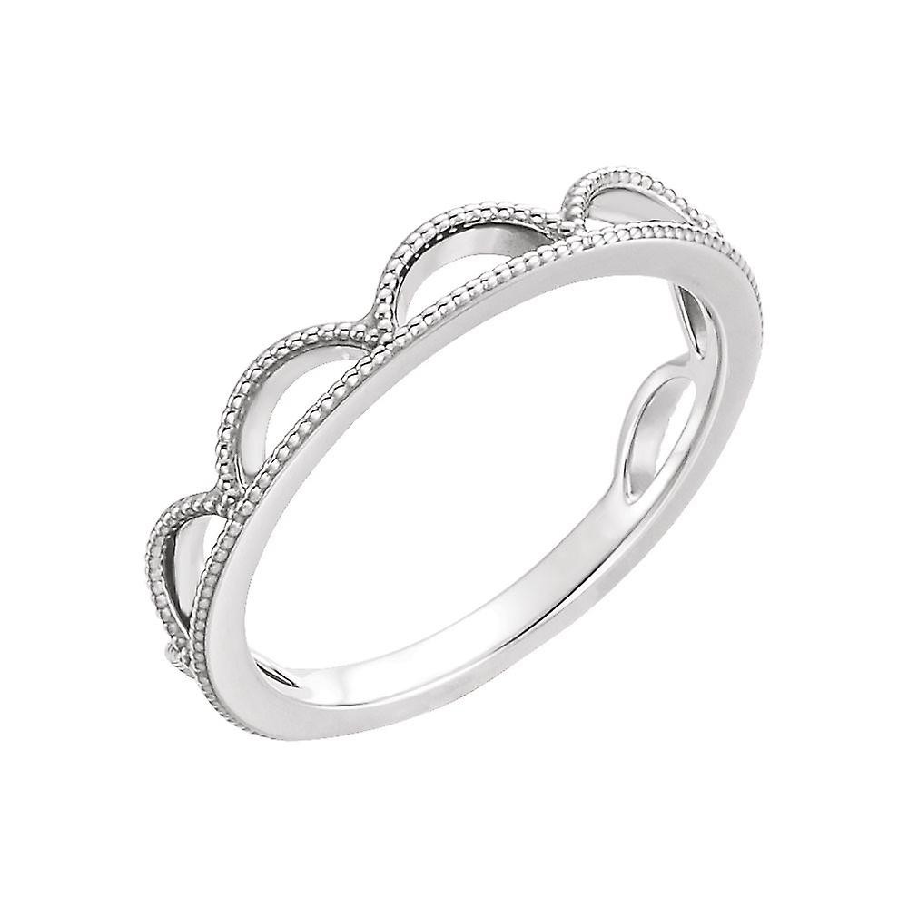 خاتم متداخل من الذهب الأبيض عيار 14 قيراطًا مصقول، مقاس 6.5، هدية مجوهرات للنساء (2.4 جرام)