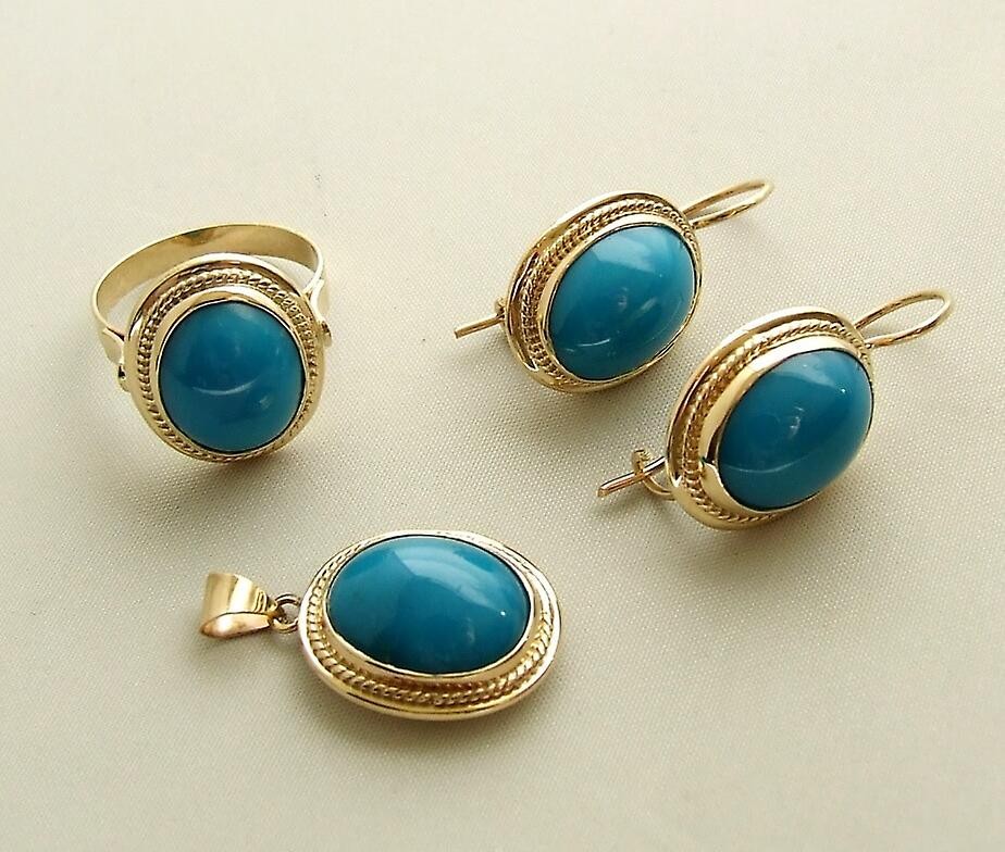 خاتم من الذهب وأقراط وقلادة من الخرز التركي.