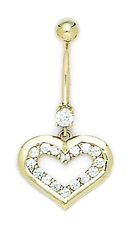 خاتم سرة البطن من الذهب الأصفر عيار 14 قيراطًا مرصع بأحجار الزركونيا المكعبة والألماس، مقاس 14